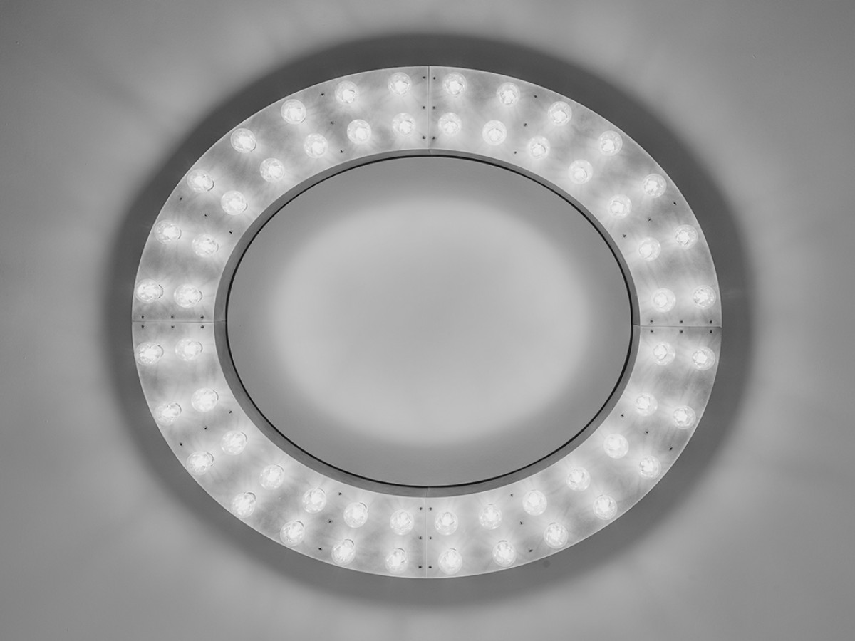 Buchstabenleuchte X und O verschiedene Grössen, Stahlblech pulverbeschichtet zweifarbig, LED-Lampe 5,5W, Kunststofffassungen E27, PVC-Leitung, elektronischer Dimmer, 240V Wechselspannung 50 Hz, Grössen von 150 cm x 130 cm x 20 cm bis 100 cm x 90 cm x 20 cm