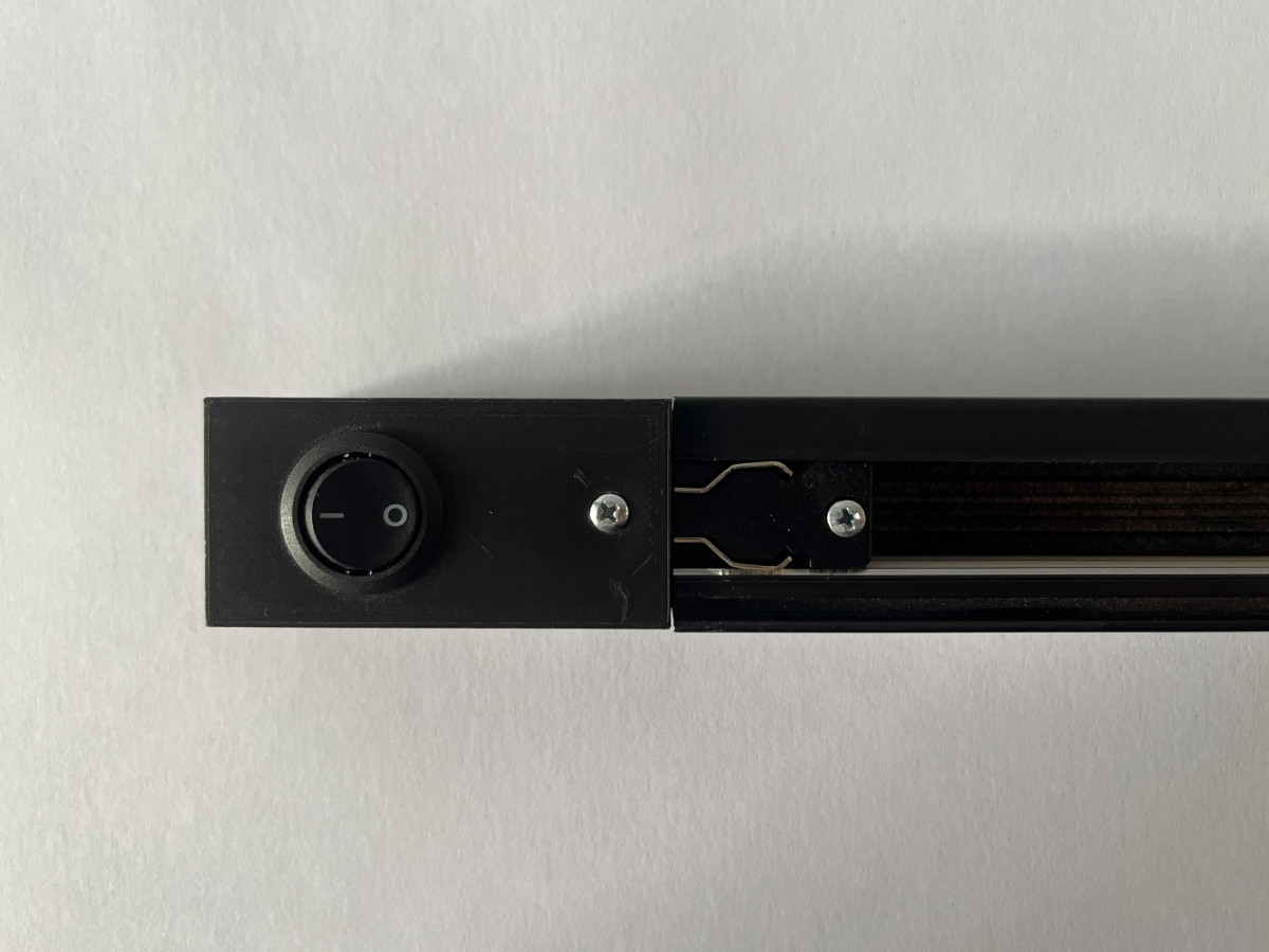 3-Phasen-Stromschienenseiteneinspeiser schwarz, Schalter rund schwarz, Deckel Kunststoff 3D-Druck