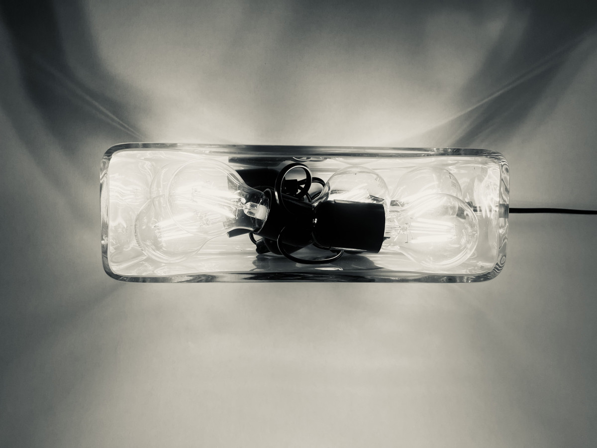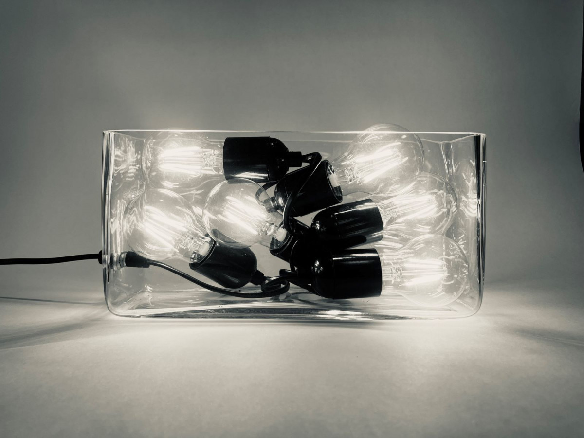 Aquariumleuchte (Arbeitstitel), Glas, 6 x LED-Lampe 5,5W, Eurostecker, Bakelitfassungen, PVC-Leitung, dimmbar, 240V Wechselspannung 50 Hz
